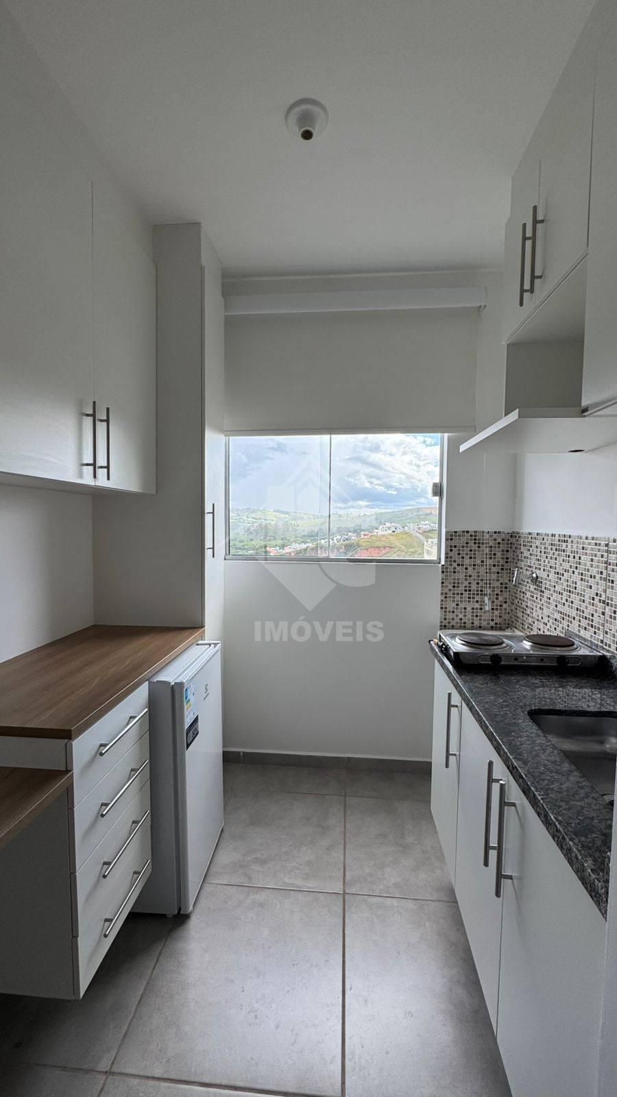 Unidade totalmente mobiliada com cama de casal, roupeiro, frigobar e fogão elétrico 02 bocas.