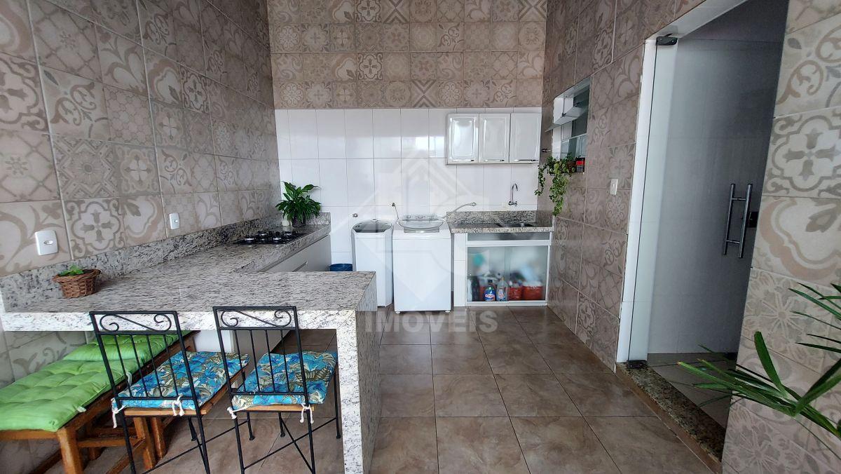 São 3 quartos, sendo 1 suíte, sala de jantar, sala de estar, 2 cozinhas, 3 banheiros sociais, 2 vagas na garagem, área de serviços, terraço com área gourmet, banheiro, pia, salão.