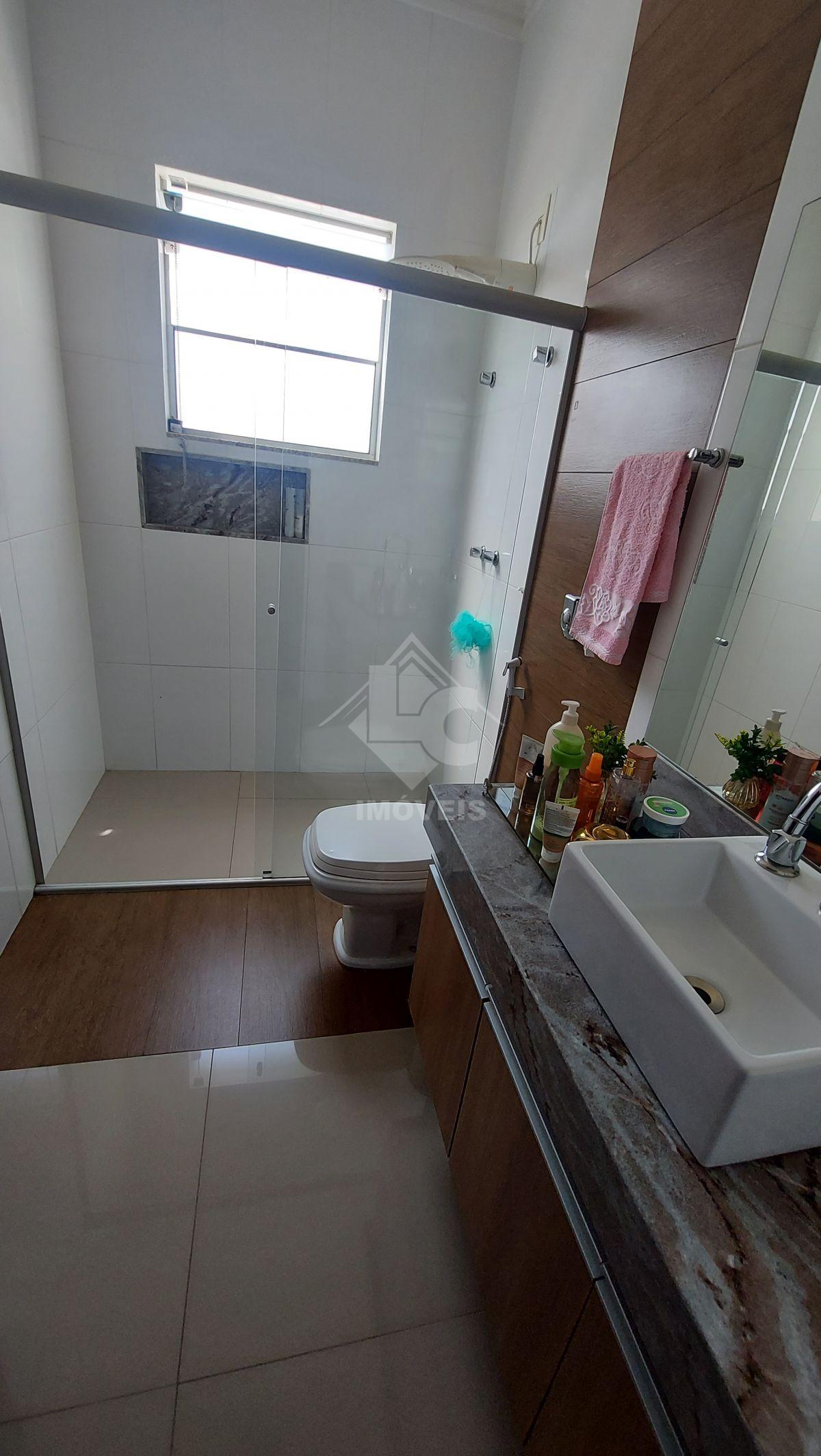 Acabamento em porcelanato, piso laminado, rebaixamento de gesso e sancas, corrimão e grades de ferro forjado, balcões e pias em granito, cobertura colonial com telhas de cimento, interfone, portão eletrônico.