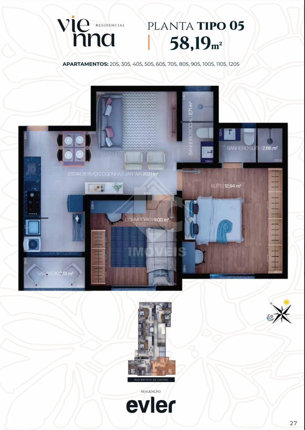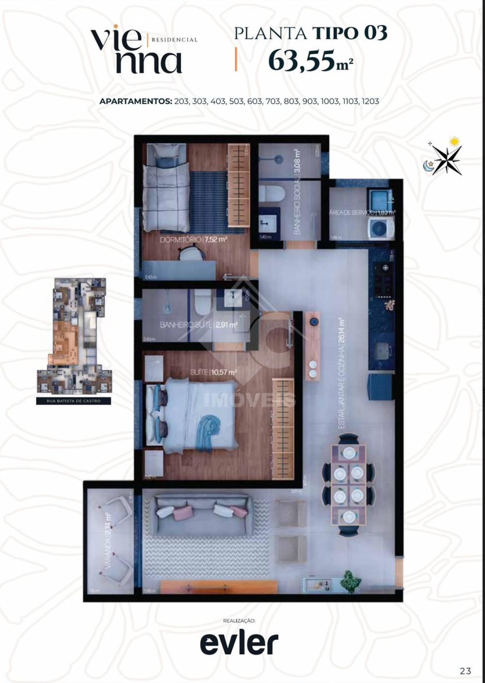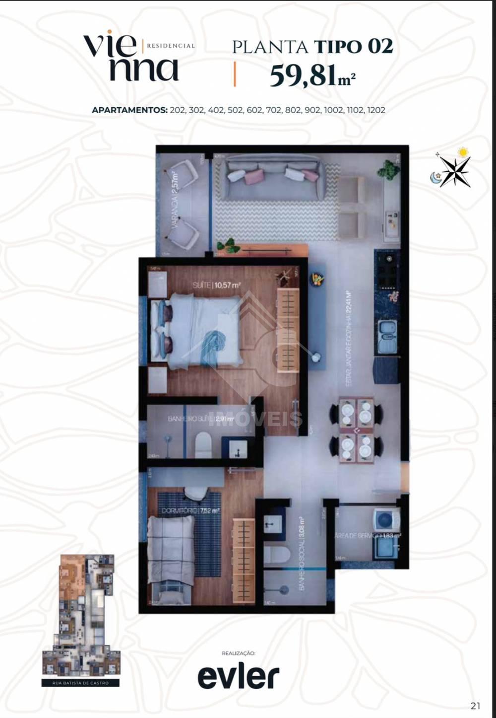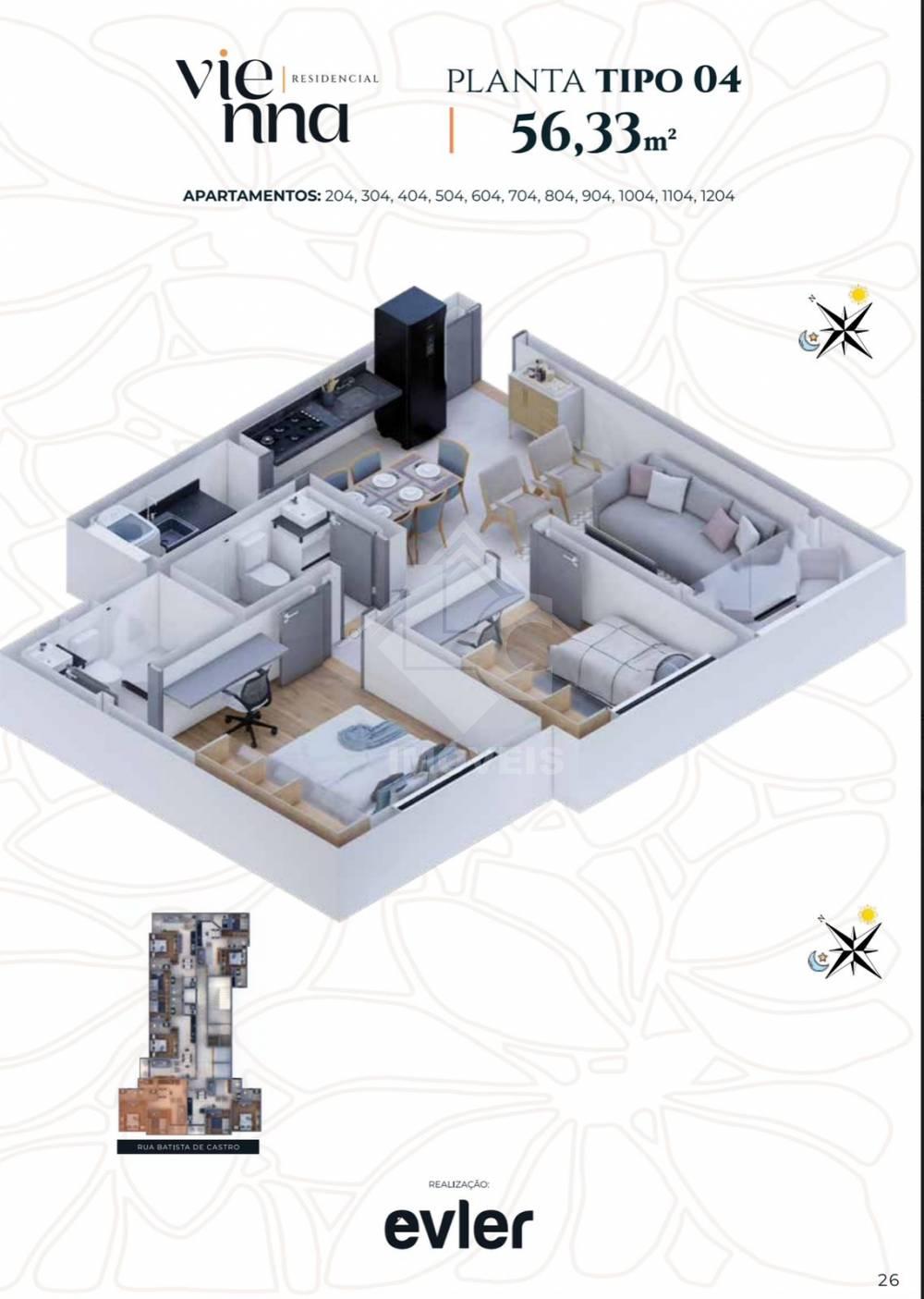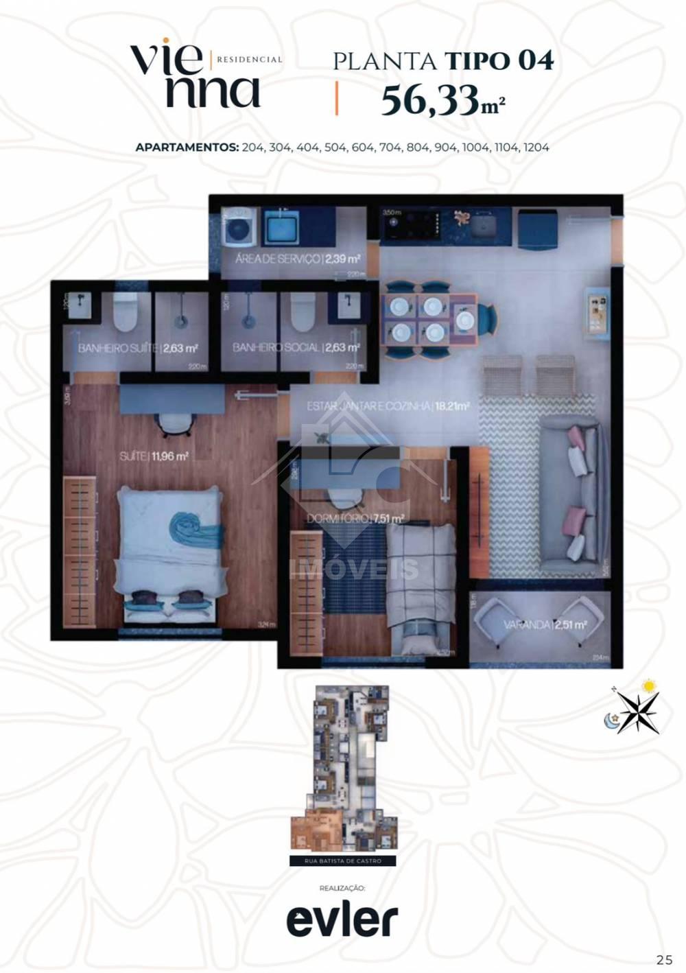 Prédio contará com 355 m2 de lazer à sua disposição, como: academia, piscina, salão de festas, brinquedoteca, coworking, sala bem-estar, garagem de carro ou moto, recepção 24 horas e 02 elevadores.