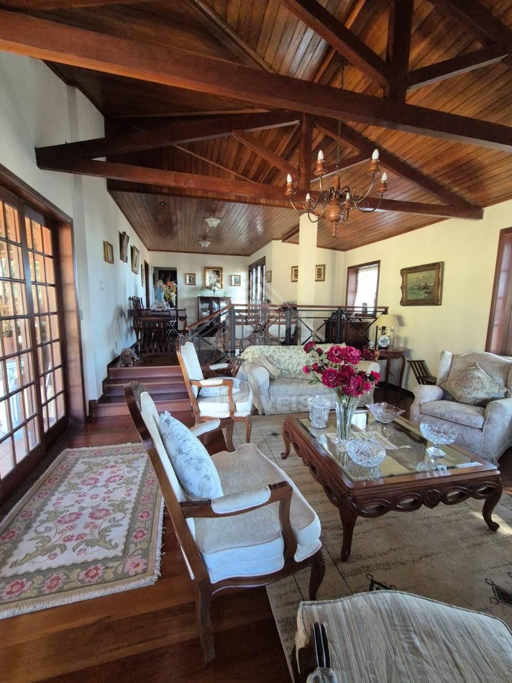 1o pavimento: sala de estar, sala de visita, sala de TV, cozinha, escritório, lavabo, 01 quarto suíte, 02 despensas, adega, área de serviços, varanda, 02 vagas de garagem cobertas e várias descobertas.