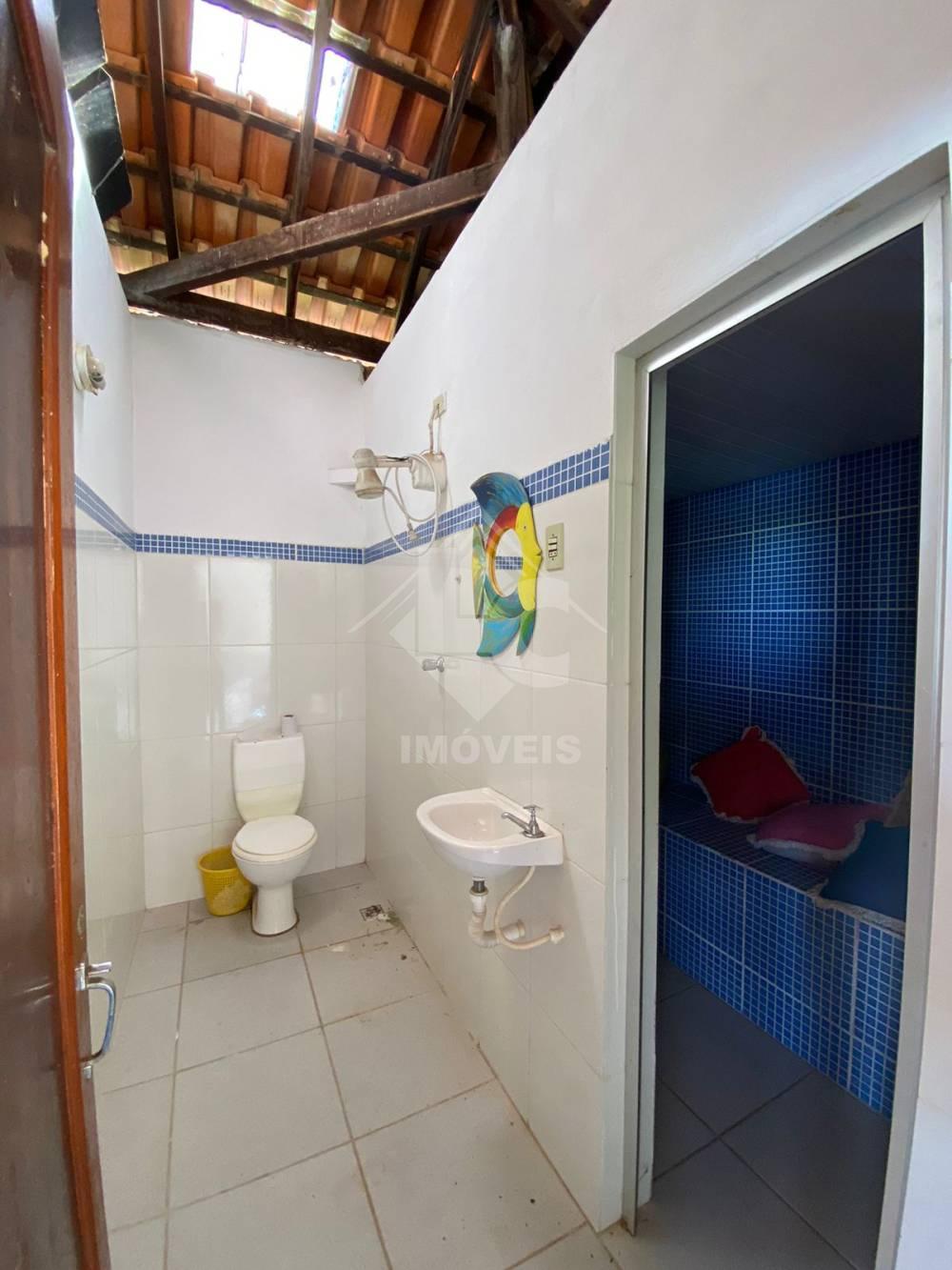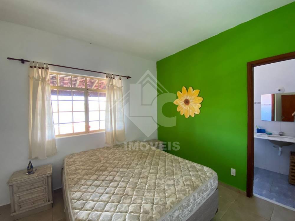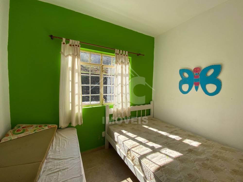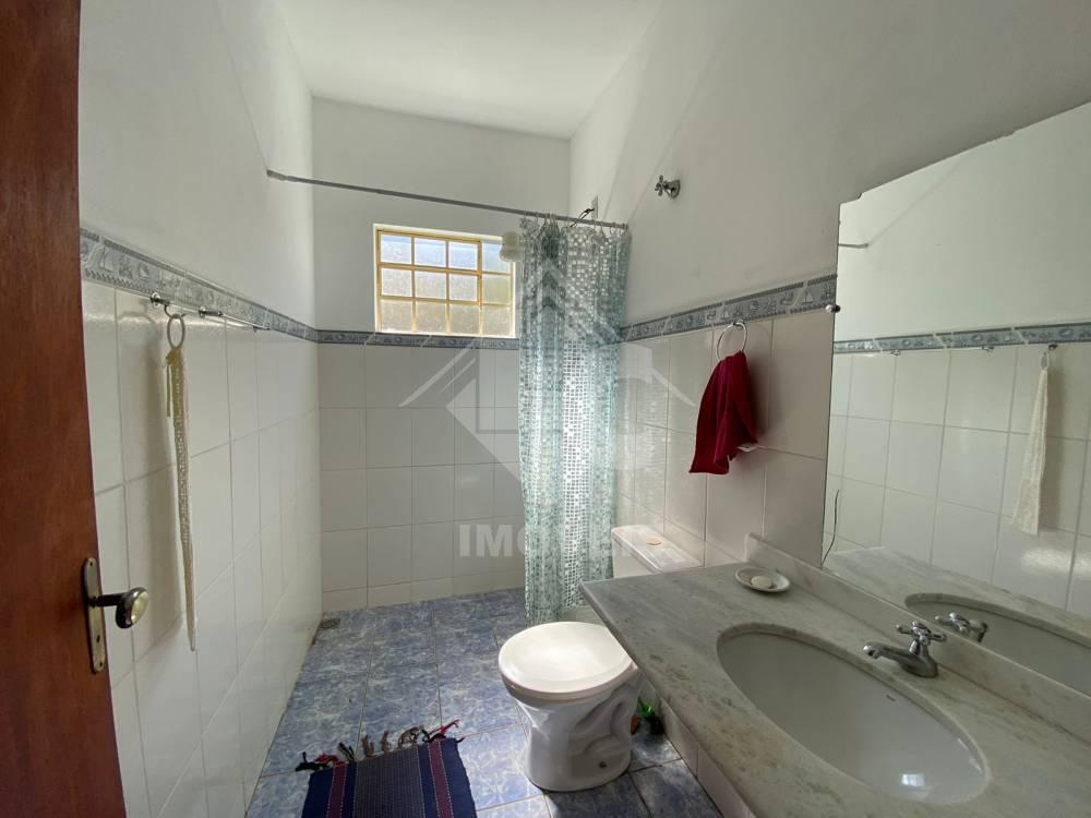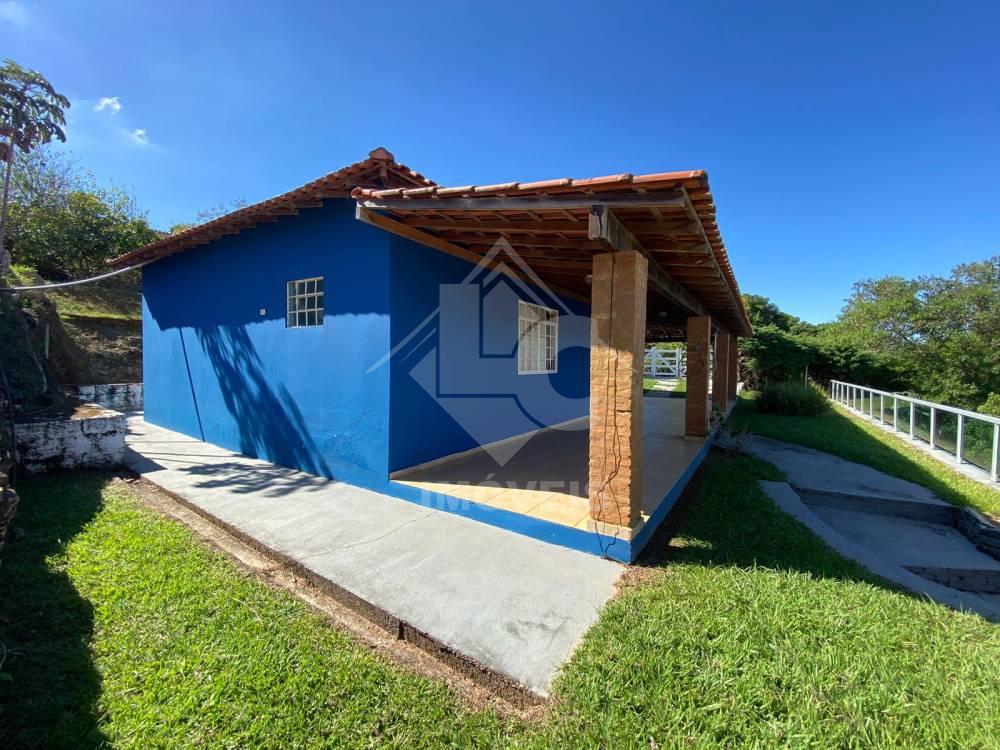 Casa com 3 quartos, sendo um suíte, sala com lareira, cozinha conjugada à sala, banheiro social, varanda, área gourmet com churrasqueira, fogão à lenha, pia, sáuna, banheiro.