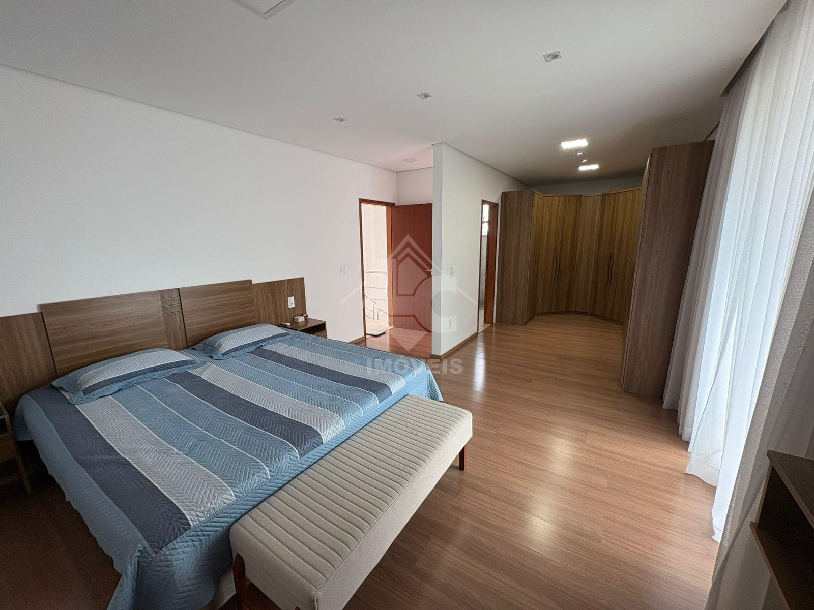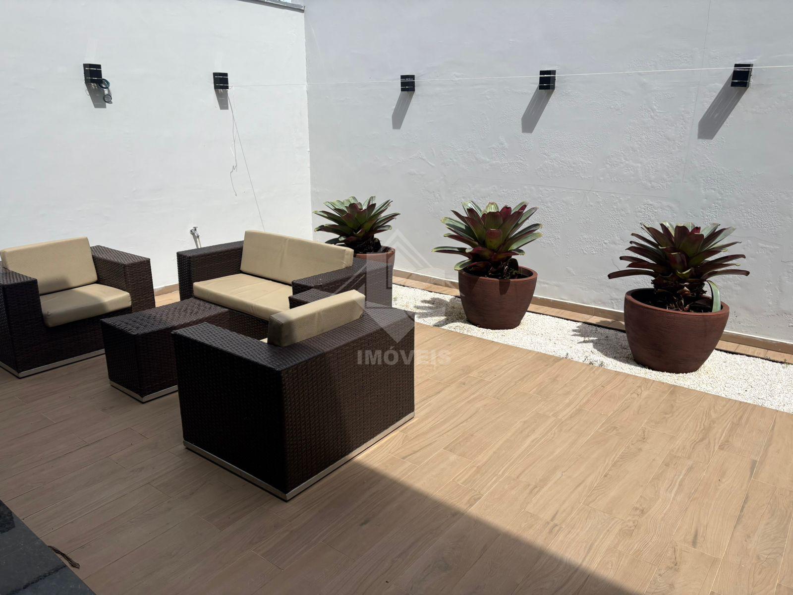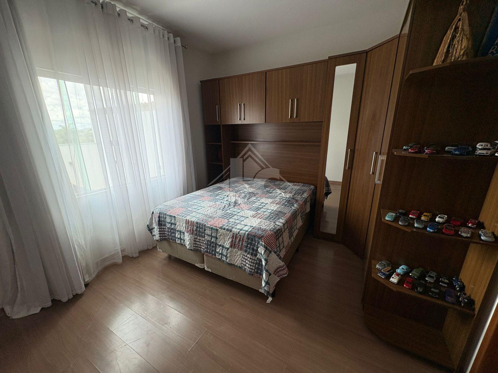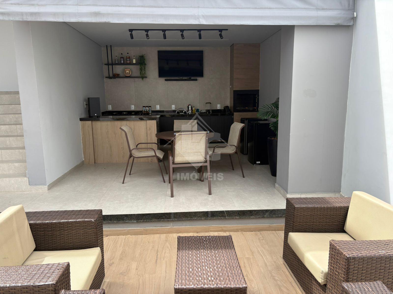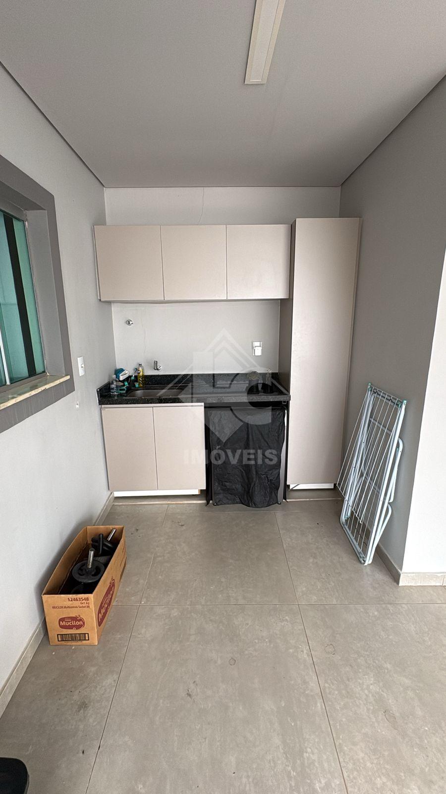 São 3 quartos, sendo duas suítes, uma no primeiro andar e uma no segundo, sala, cozinha, banheiro social, cozinha planejada, escritório planejado, lavanderia planejada e garagem para 3 carros e motos, sendo dois carros independentes.